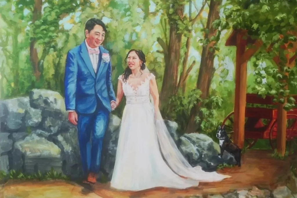I create paintings live at your wedding to create an unique, one of a kind, keep sake. I take photos of your ceremony and then create a finished piece during the reception. Guests can see it come to life right before their eyes. I can also create prints for family members and thank you cards for the quests.